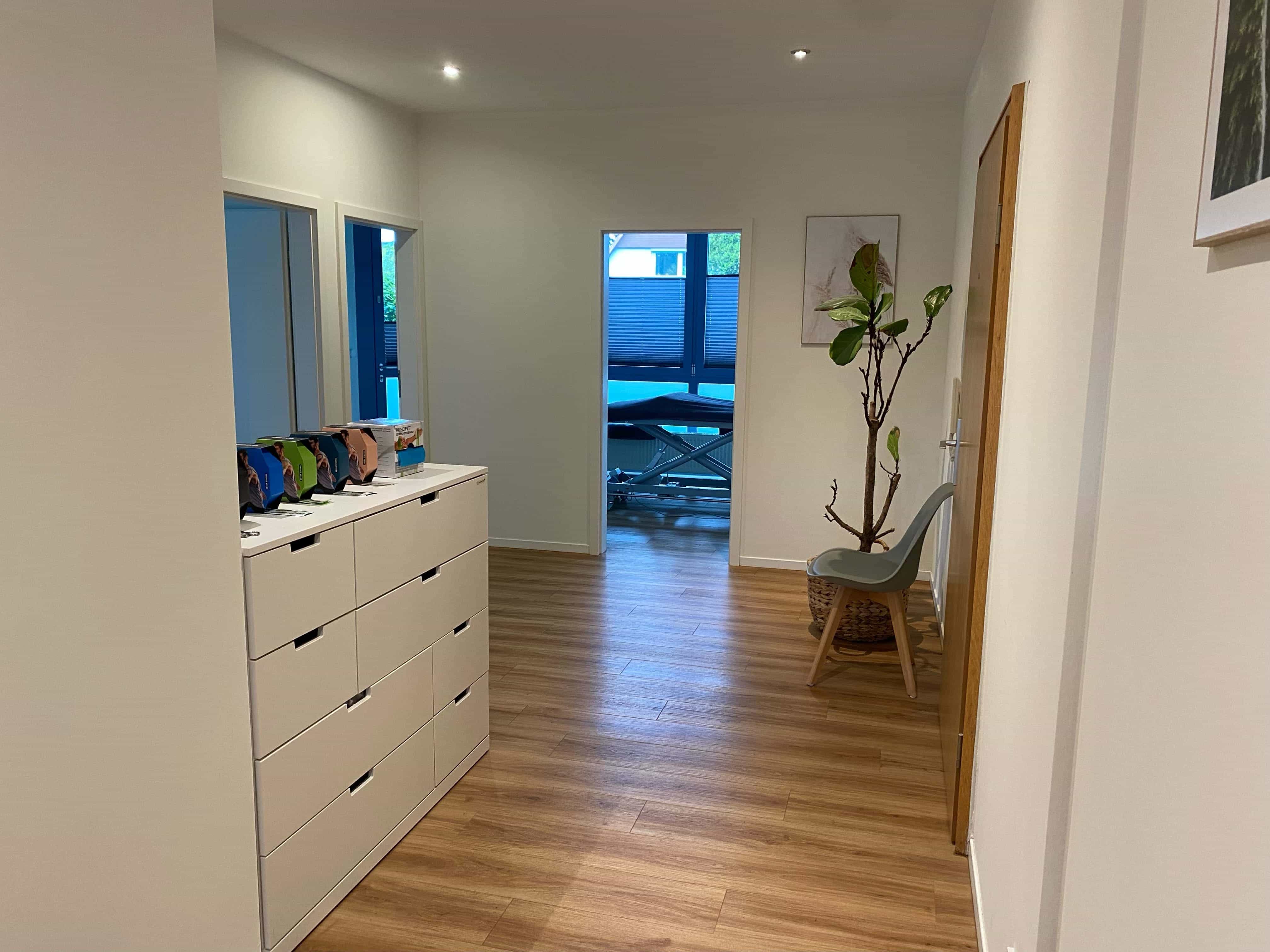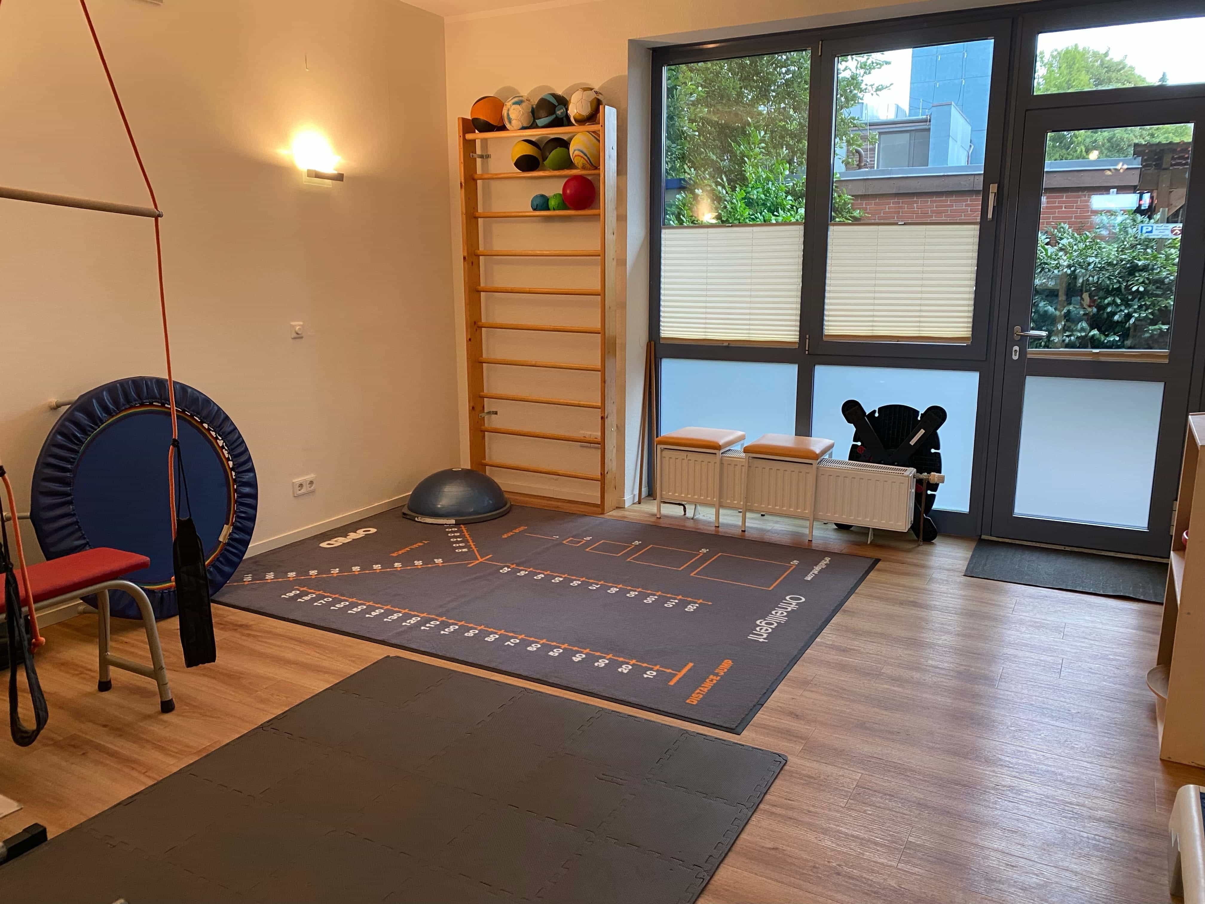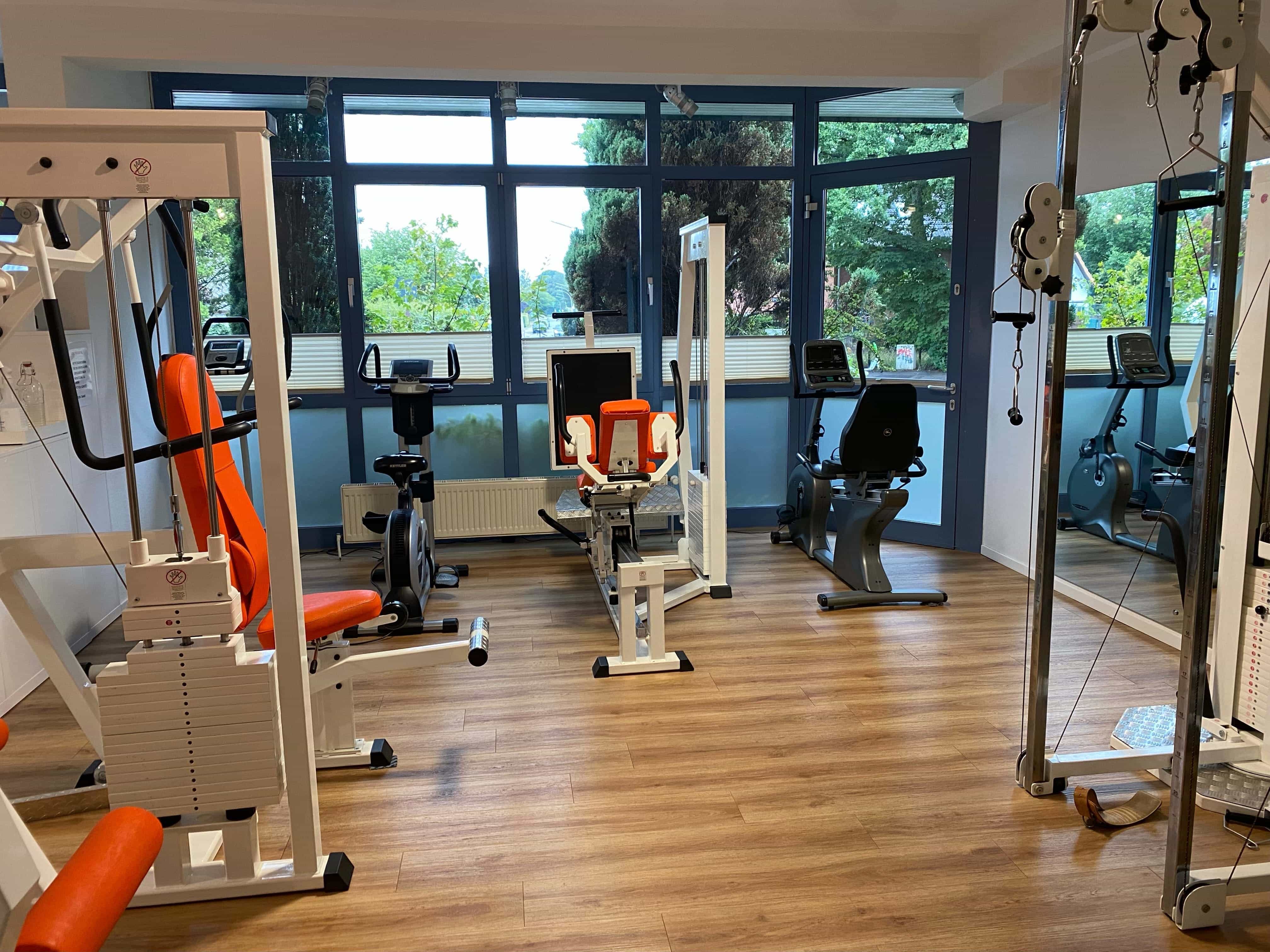 Wir bieten Ihnen helle und großzügige Praxisräume, in denen Sie sich wohlfühlen können, und eine umfangreiche Trainingstherapiefläche mit modernen Geräten.